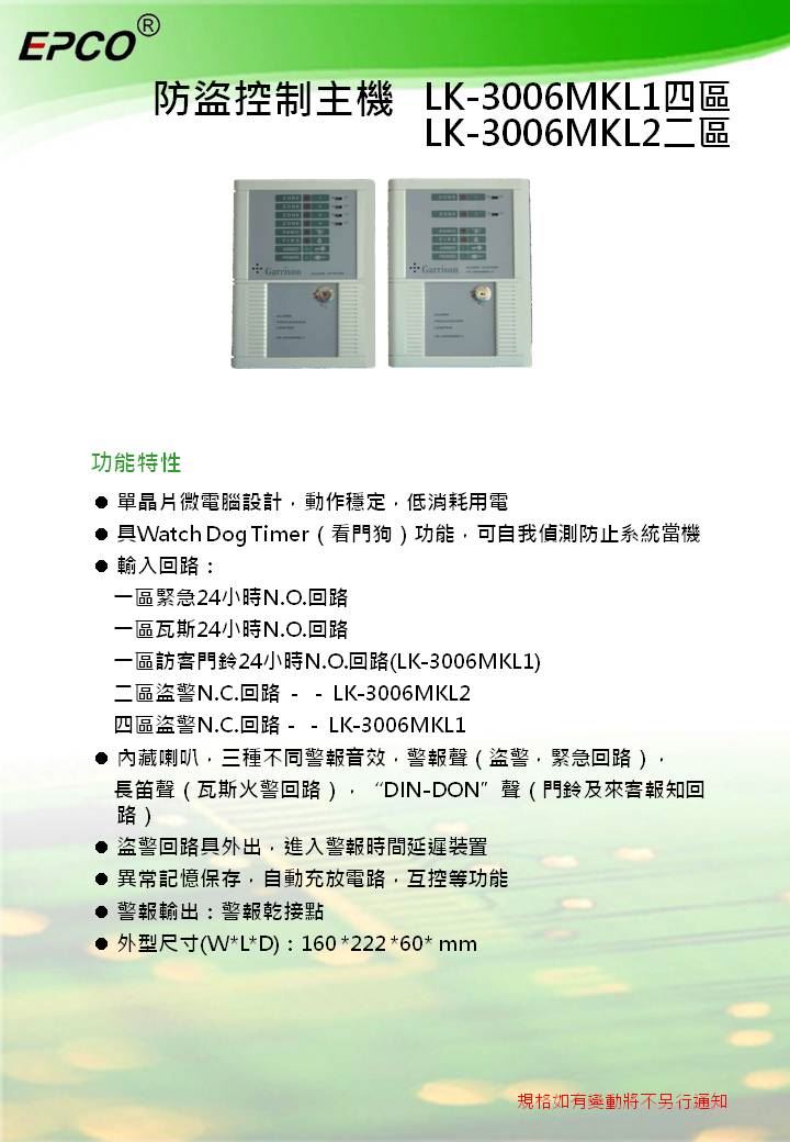一區訪客門鈴24小時N.O.回路(LK-3006MKL1)